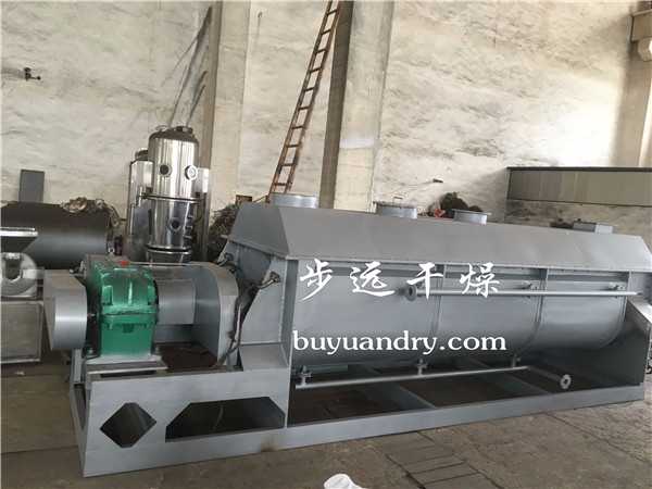 浆叶干燥机已成功地用于食品、化工、石化、染料、工业污泥等领域。设备传热、冷却、搅拌的特性使之可以完成以下单元操作:燃烧(低温)、冷却、干燥(溶剂回收)加热(融化)、反应和灭菌。搅拌浆叶同时又是传热面,使单位有效容积内传热面积增大,缩短了处理时间。楔型浆叶传热面又具有自清洁功能。压缩--膨胀搅拌功能使物料混和均匀。物料沿轴向成"活塞流"运动,在轴向区间内,物料的温度、湿度、混合度梯度很小。用导热油做热介质浆叶干燥机可完成低温燃烧工作。如:二水硫酸钙(Ca2SO4·2H2O) 燃烧转化为半水硫酸钙(Ca2SO4·1/22H2O)。碳酸氢钠(NaHCO3)经煅烧转化为纯碱(Na2HCO3)等。通入冷却介质,如水、冷却盐水等即可用来冷却。如:使用于纯碱行业的浆叶式凉碱机,取代老式的空气冷却凉碱机,节省了能源及尾气处理设备,降低了操作费用。干燥,设备最主要的功能,不使用热空气,使溶剂回收、能源消耗、环境控制处于易处理的理想状态。对需回收溶剂、易燃易氧化热敏性物料尤为适应。已广泛用于精细化工、石化、染料行业。轴向区间内,温度、湿度、混合度的均匀性,使得设备可用来加热或融化,或进行一些固体物料反应。在复合肥及变性淀粉行业均已成功使用。浆叶干燥机可用来对食物和面粉进行灭菌处理。单位有效容积内大的加热面积,很快就将物料加热到灭菌温度,避免了长时间加热而改变物料品质。